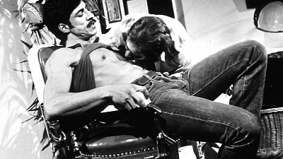 In for a trim, Malo has Jayson MacBride take a bit off; Jayson is a top after all. Bending over the barber chair, Malo straddles while Jayson works from behind. Later, at the Adonis Theatre, the movie plays as backdrop to all the entertainment; plenty of hung dudes meeting up inside the men's room.