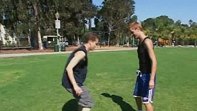 Both of these angelic young gods are a perfect match for each other. Outdoors they show off their bodies as they kick the soccer ball around. The outdoor heat brings them back indoors where the real ball playing begins. These two suck and kiss like they mean it. The heat continues as the action moves to the bedroom. Derek is very turned on as he takes Caleb's hole in several positions. His moaning and groaning make it very hard not to want to join in. Their succulent balls spill their loads of thick, creamy spunk all over each other.