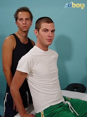 Caleb calls on Massage Therapist Mike to help him out with his pulled groin muscle from playing soccer. Mike begins to feel him out looking for the sore spots. Wondering hands lead to Caleb's crotch region. Much attention is given to this area. Caleb's hand then reaches over for Mike's crotch and begins to stroke his cock. This no longer is a therapeutic massage. Their kissing is passionate, their cocksucking is frenzied and their ass fucking is so intense it will make you want to rewind for seconds.