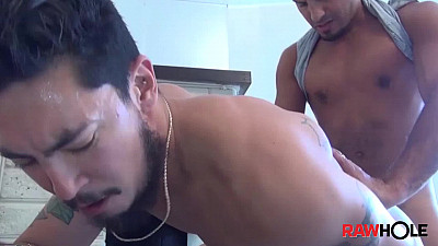 Tan Puerto Rican stud Antonio Biaggi leans against a shady wall rubbing his crotch when sexy Asian bottom Cory Koons takes the bait and strikes up a conversation. After a halting few sentences in broken Spanglish, they head inside and Biaggi feeds his massive cock to Koons. Cory has to open wide to get the thick caramel-brown tool down his throat. Antonio pulls his shirt up behind his neck, whacking his dick while Cory slobbers on his low-hanging nuts.