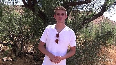 Our newest model Oliver Dean loves the thrill of making his first solo out in the Arizona Desert and a well known cruising spot! He quickly learned that it wasn't only hot in the 105 AZ sun but the guys were quickly checking him out! It wasn't even 5 mins into a photo shoot that a middle aged man strolled by and wanted to see more. We decided to move to a different location and we spotted another older man letting it all hang out while walking around.