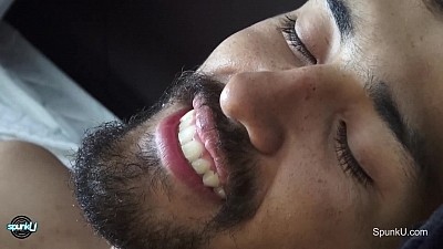 Diego is a fresh-faced, new student at SpunkU, but with a tutor like Rave Hardick on board, he'll be a master of his craft in no time. Rave starts out as the ultimate romantic in crisp white shirt, kissing and nuzzling Diego until his student is sex-crazed and RARING to go. He strips to his jeans then gives Diego a few licks across the sensitive hole, nibbling at his neck and ears, then finally strips to let Diego have a go at sucking his massive XXL cock. Diego is so turned on that he doesn't blink an eye at the giant cock in front of him and sucks it with enthusiasm. Rave next opens him up with a clear glassy dildo, whispering sweet nothings to him as it slowly enters to fill his tight butt. Now he's ready to take on Rave himself. An extra dollop of lube and patience go a long way, and once he knows it will fit Diego climbs on to ride the big brown monster cock. He's grinding on it, milking Rave with his horny ass like a pro before you know it. Rave turns him over and smoothly plunges in to the root like the expert cocksman he is. Diego is so close that this ass-plowing can't go on forever, and Rave goes down and rims his quivering hole while Diego pumps out a thick, well-earned load across his belly.