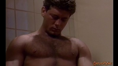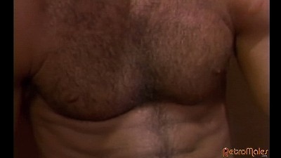 Our pals from the last segment trot along the beach, passing by big (BIG) star Chad Johnson, and greeting the furry, shirtless stud. This segues into Chad Johnson's dynamic solo scene (previewed briefly during the video's opening credits). Johnson needs some alone time, and spends it perched on a toilet, showing off his muscled body and stroking his massive cock. He gets more and more into the scene as he beats his meat vigorously, concluding with an explosive cumshot, his seed flying through the air.