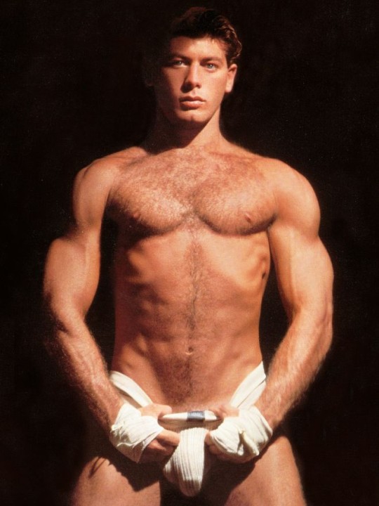 Another formation ensues: Johnson is in a perfect voyeuristic position, as he strokes himself while Worth sits on Allen's cock right in front of him, the fucking pair sprawled on top of his legs. Allen slams himself into Worth from below and Johnson beats his meat to this close-up view.