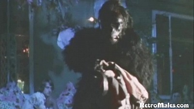 For all the twists and turns of the wacky plot, there is still plenty of hardcore pre-condom sex here. Shaggy brunet Clark (think 1970s pop crooner Bobby Sherman) and his lover Robbie (Shawn Roberts) start the action off with a little foreplay on the floor and some juicy 69-ing, eventually launching into a full fuck. The sex scene is intercut masterfully with footage of Arachne in a psychedelic nightclub, watching with disdain an elaborate male strip show.