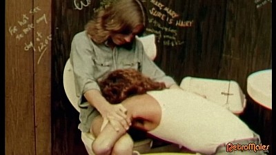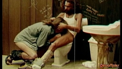 The two toilet trollers are quickly all over each other in this dingy setting. One of them long, pin straight, light brown hair that somehow has feathery bounce, along with a wispy mustache. The other, darker-haired brunet has voluminous, kinky hair and a bushy beard (and busy pubes). The chemistry and excitement between them feels palpably authentic, the setting's extensive graffiti adding a lot of character to the scene, as well.