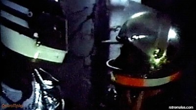 The next two scenes are bound together by the French narrator (discussed above), and are essentially attempts to combine "ze art" film with hardcore pornography, mostly unsuccessfully. A helmeted individual wearing skin-tight jeans and loud echoing motorcycle boots (woof!) exits a subway, mounts a motorcycle, and rides to a warehouse. Another helmeted individual (who turns out to be the top in the scene), awaits him on a motorcycle, but the scene is so murky and phantasmagoric that one can't tell what is really happening.