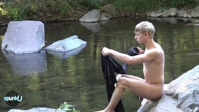 He's comfortable enough to drop his drawers and let Douglas get some erotic shots of his smooth naked body. Daniel stands with his strappy jeans around his ankles and round firm butt aimed straight at the adoring camera. Stretched out nude in the chilly rushing creek, he's a perfect nature boy.