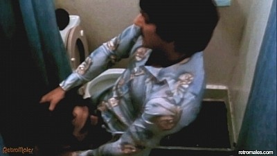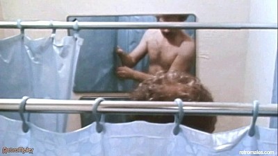 Meanwhile, the painter, Roger, and Garry Hunt are watching a black-and-white porno movie on Jack's projector -- all jacking off in the living room. As we watch bits of the movie, we see two lean and youthful men suck each other's big dick and 69 -- until they fuck ass.