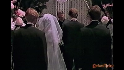Wedding day and time for the groomsmen to play! Later, at home, Fuller and London are getting dressed for the wedding. London shyly mentions that something funny happened at the tailor's and Fuller confides that the same thing happened to him on his visit to the barber. London tells him he knows brother Bobby was behind it. They call to him and Carson, wearing only pants and suspenders, enters to find them both with their cocks out, staring at him. Carson eagerly kneels and sucks them both off. They all strip down and get on the bed and London fucks Carson while Carson blows Fuller.