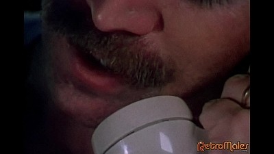 First is Scene 1, in Elko, Nevada, where a man is working late at a gas station and has some time on his hands. While drinking a Bud and smoking a cigarette, he calls up his son, who is also working late as a janitor at a gym. The father starts stroking his thick cock while talking (only his prick and the lower, mustached half of his face are shown during the scene), knowing his son is "probably pretty horny too." The son also pulls his dick out of his gym shorts and starts beating off in the locker room. The two jack off while on the phone, never telling each other what they're up to. The phone caller's description of the scenario and the father's dialogue are layered in with the driving electronic Man Parrish score.