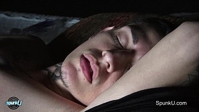 Dark, smoldering Jordan peels off his robe and caresses his lean tattooed body. He sensuously brushes his hands along his taut thighs, then a hand finds its way to his crotch. Rubbing and softly stroking, he sensuously rolls over to expose his smooth ass and teases it with a clear ridged dildo. Never letting the camera escape his intense glare, he deftly pulls back the skin on his smooth uncut cock. As warm deep sexual feelings take over, he closes his eyes and succumbs to waves of pleasure.