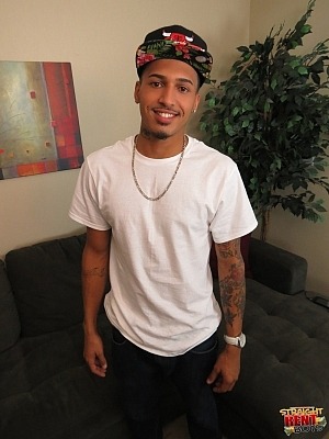 Jose' Camacho is 19, straight, with a girl, and 'getting into the industry.' He's been web-camming for a couple of years and thinks he's 'willing to experiment.' This Straight Rent Boy is going to start with a tug today, and as 'a freak,' he'll be back for more. At 5'11', 150 lbs. and tight, he's a mix of Puerto Rican and Dominican; checking out his fat cock and nice ass, I'd agree. As he grows, Jose' says he's 7', but I'm think that's just on a slow day.