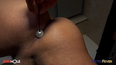 His libido kicks into high gear. Kenji pulls aside the thong strap at the asscrack and yanks them down. His furry ass is hungry, and he feeds it a leather strap studded with pearly balls. It swallows down the string of balls one at a time, then Kenji threads a finger through the metal ring at the end of the strap and slowly pulls. Ball after ball pops out of the tight ring of his hole, and his sexual hunger increases. A vibrating sex toy swells and sucks on his nip as he continues stroking. He moves it over to knead and vibe his heavy nuts. He stretches across the counter to give his big dick the last bit of attention to drive it over the edge. "Oh FFFUUCK yeah," Kenji groans as the load starts bubbling up from his nuts. His fresh hot ramen is ready and waiting, and he wants to add a thick creamy edge to his meal. Milking out a gooey wad from his shiny uncut dickhead, he aims every drop into the steaming ramen. Stirring with a pair of wooden chopsticks, the perfect dish to satisfy his hunger is served. "Mmm, this is the best one. You should try it!" he purrs with a mischievous smile.