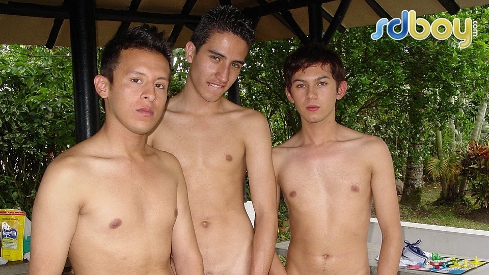 Three young shirtless studs are outdoors cutting wood like you've never seen before. They soon strip naked and start kissing and sucking dick, working on their own wood. A spirited three-way puts the trio through a serious of inspired positions fucking bareback. At one point Miguel and Cristian get on all fours, butt to butt, putting their assholes in the air so Giovani can rim and finger fuck them. There's another point all three stack themselves one on top of the other fucking each others young bare holes. These young studs finally shoot their big loads of cum right into Giovani's mouth. Their energetic three-way is hot and intense you're likely to blow spunk in your before you can get your prick to whack it.