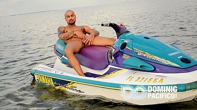 It's a perfect sunny day on the lake, especially when you can drive your little sea-doo over the cool calm waters dressed in nothing but what God gave you. Sultry bearded stud Ari gypsy finds a secluded (?) spot in the middle of the lake to lie back and jack his thick tan prick. A bit of lube and a nice couple of rubs across his tight muscled body and his cock is up and hot in the summer sun.
