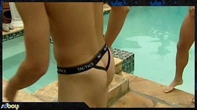 Next, he meets Marcus at the pool; both get naked and do what "cums" natural. Setting the tone, Kissing is not the only "deep adventure" these two have. Blowing one another, Kye goes "further" and rims his partner before sliding in. After several "tight" positions, Marcus rides atop while Kye strokes the bottom's cock; the load is not to be missed. Kye then explodes while he and his partner are still intertwined.