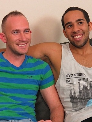Having Brian back, I let him know how much he is liked on the Straight Rent Boy's site. Although he is not gay, he is willing to do some things with a guy. Today I pair him with Trit, a gay guy who likes the challenges of straight men and what Brian has to offer. No, Brian won't be fucking, or getting fucked today, but, tomorrow is another day. Checking in with the guys to see what they are comfortable with, Eddie and I agree with Trit, 'yeah, I'll suck his dick.' Both get naked, sit back down and Brian admits, 'guys suck dick way better than *****.' Trit proves to be an avid mouth as Brian is up quickly and beginning to moan. I check with Brian, who doesn't mind playing with Trit's dick; seems as though these two are very comfortable with one another. Watching Brian get serviced is really hot, as he gasps, repositions, and grabs onto Trit's meat. We all agree that Brian 'has a nice dick.'