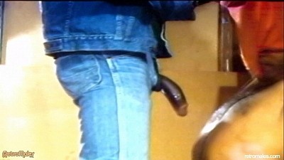 Back at the bar the action continues, only this time the youthful white bartender gets involved. As Joe picks up where he left off on Rod's cock, Rod goes down on the bartender. Soon the bartender gets up on the bar and takes Joe up his ass and Rod down his throat.