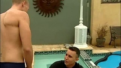 What that's splashing noise? The voyeur that he is and with sex constantly on his mind Kye is curious to find out. He looks over the fence and notices hot stud Marcus floating on his pool catching some rays. Kye then gets busted for peeking over, but before you know it they are both naked in the pool. They take advantage of the moment and fuck in every part of the pool. Marcus seems to have a hungry hole and Kye just feeds it to him. A photo montage ends the scene.